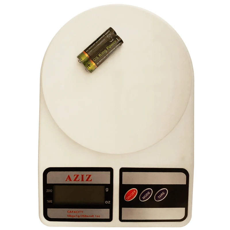 ترازو آشپزخانه دقت 1 گرم ظرفیت 10 کیلو کارکرد با باتری نیسم قلمی کوچک و مناسب برای کارهای دقیق آشپزخانه
