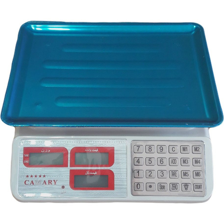 ترازو 40کیلویی دو طرف نمایشگر سینی استیل با دقت 1 گرم مارک کمری اصل گارانتی 6 ماهه معتبر ایران وزن قابلیت قطعه شمار(مناسب شغل های مانند پیچ فروشی)نمایشگر LCD کارکرد با باتری به مدت 1 هفته مداوم کیبرد استیل و 5 عدد حافظه قیمتی توانایی کارکرد با باتری قوه بزرگ جنس بدنه ABS مقاوم